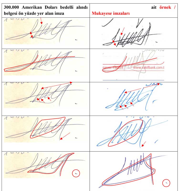 İmza inceleme dosyalarında bulunan imzalardaki karakteristik unsurlarda görülen farklılıklar, imzaların farklı kişilere tarafından atıldığını gösterebilir. Ancak kişilerin kendi imzalarında görülen doğal varyasyonlar olup olmadığı belge inceleme uzmanı tarafından tespit edilebilmektedir. İnceleme konusu imzalar ile mukayese imzaları arasında şekli benzerliklerin yanı sıra bazı farklılıklar da olabilmektedir.